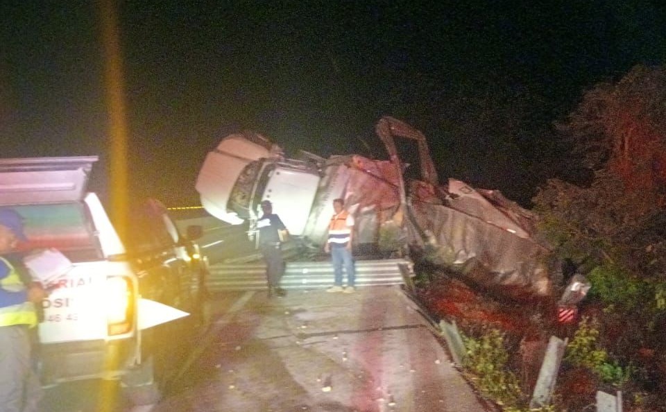 Los hechos ocurrieron alrededor de las 02:25 horas a la altura del kilómetro 206. Según los reportes iniciales, el conductor de la pesada unidad, identificado como José Eliazar Tun Moo, de 51 años, presuntamente se dormitó al volante. Esto provocó que perdiera el control hacia su derecha, derribando 25 metros de valla metálica antes de volcar sobre su costado izquierdo.