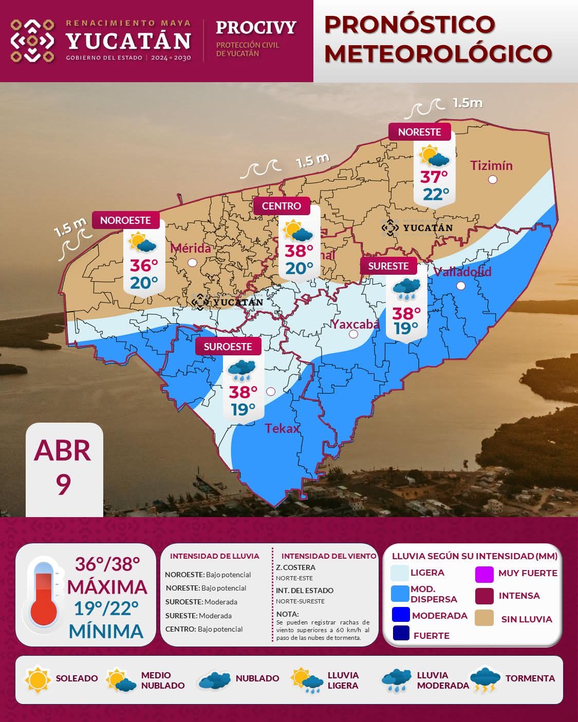 Hoy jueves tenemos entrada de aire del Golfo, así que el calor va a estar a la orden del día, sobre todo en el interior del estado con unos 38°C bien puestos. Pero fíjense que después de las 15:00 horas se va a soltar la lluvia. No será cualquier cosa, viene con viento y rayos, más que nada para la zona sur. En la costa estará más tranquilo el calor, pero igual con algo de viento. ¡Tomen nota!