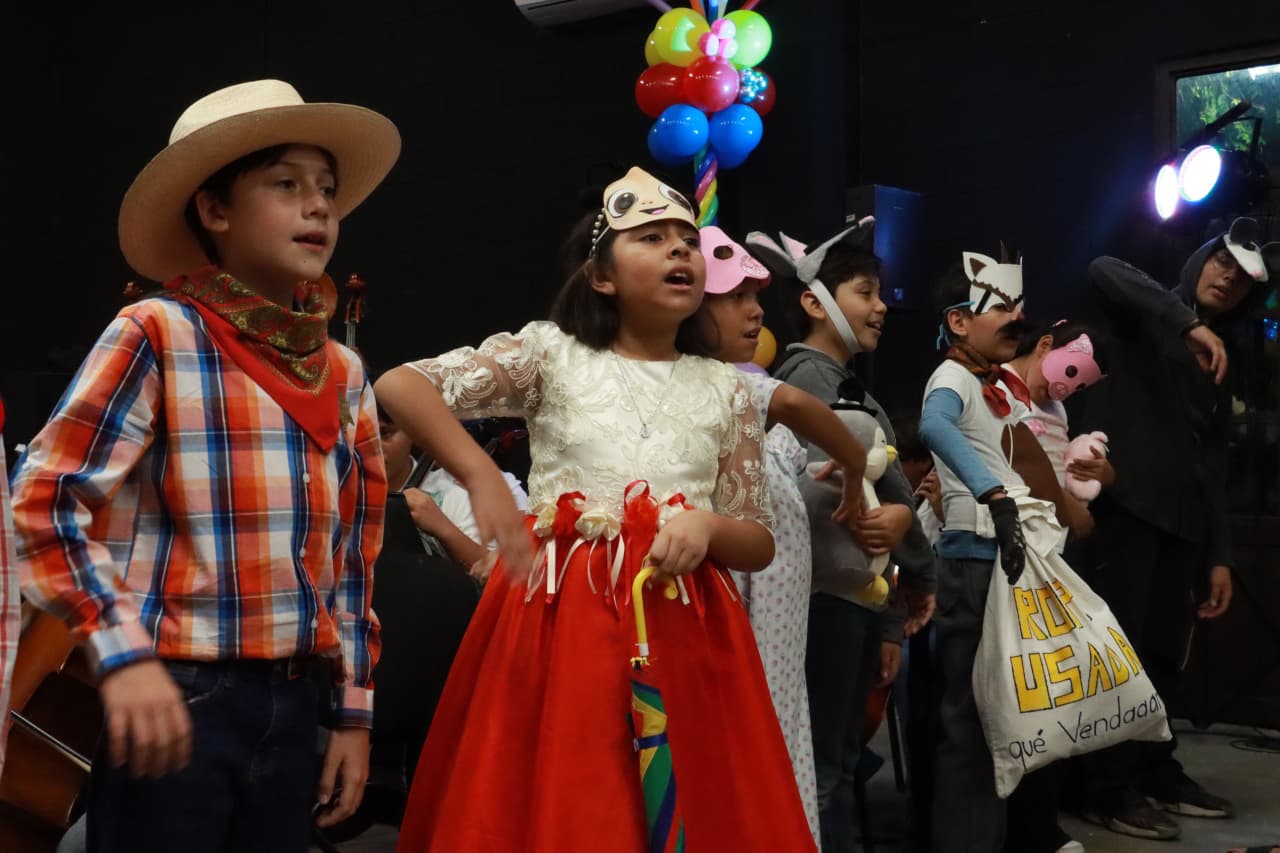 Las y los integrantes del coro se presentaron caracterizados como personajes de Cri-Cri y, además de cantar, incorporaron elementos teatrales en el escenario.
