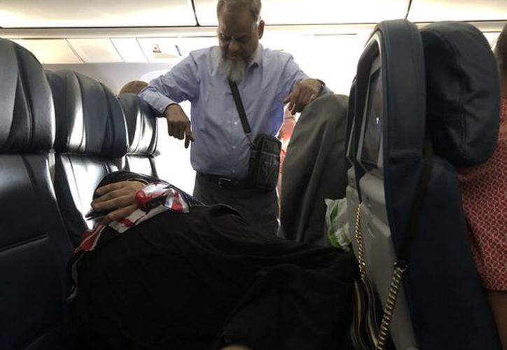 En la imagen, que ya se convirtió en viral, solo se muestra a un hombre mayor parado en el pasillo del avión mientras una mujer, su esposa, duerme recostada en los dos asientos.
